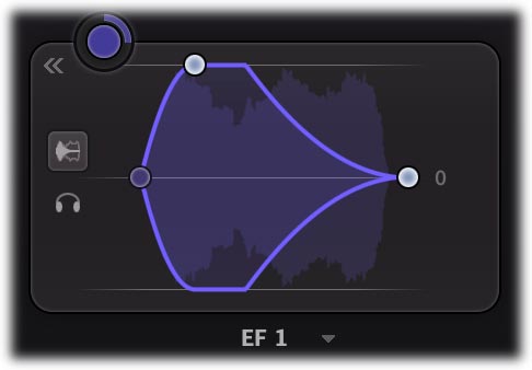 Initially the EF is shown as a source component button in the interface, showing a graphical representation of the current settings. For more information on working with source component buttons, see Modulation.